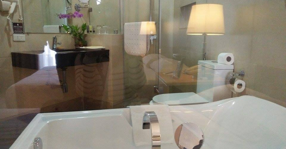 Walking towards our room is so cozy, cozy that behind the building's simple facade hides a very elegant hallways like this. So modern I can say, even the beep card or the card which can open your hotel room door was cool. Entering our room was very exciting, we chose the room which can view the beauty of the Taal Volcano but the hotel surprised us unexpectedly. The room itself was more than beautiful than the view to be honest. So elegant, cozy, modern , a place that anyone would dream to be at , specially the view to the bathroom. From the room you can see the bathroom through the mirror which can be blinds off from the inside. My most favorite part in visiting a certain place is going to it's bathroom and start criticizing the place through it (and I know I'm not the only one who do this thing). The bathroom was 2 times more elegant than the room, yeah, I thought I can even sleep in the tub because it was very pretty. Any teenage girl will love the bathroom because has everything (mirror , round mirror which can zoom in 3 times than the ordinary mirror, a hair dryer , a tub , shower place which have doors and a sufficient place that can hold your belongings like make ups and more.